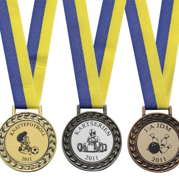 Medalj med fast långt blå-gult band, inklusive valfri text och motiv!